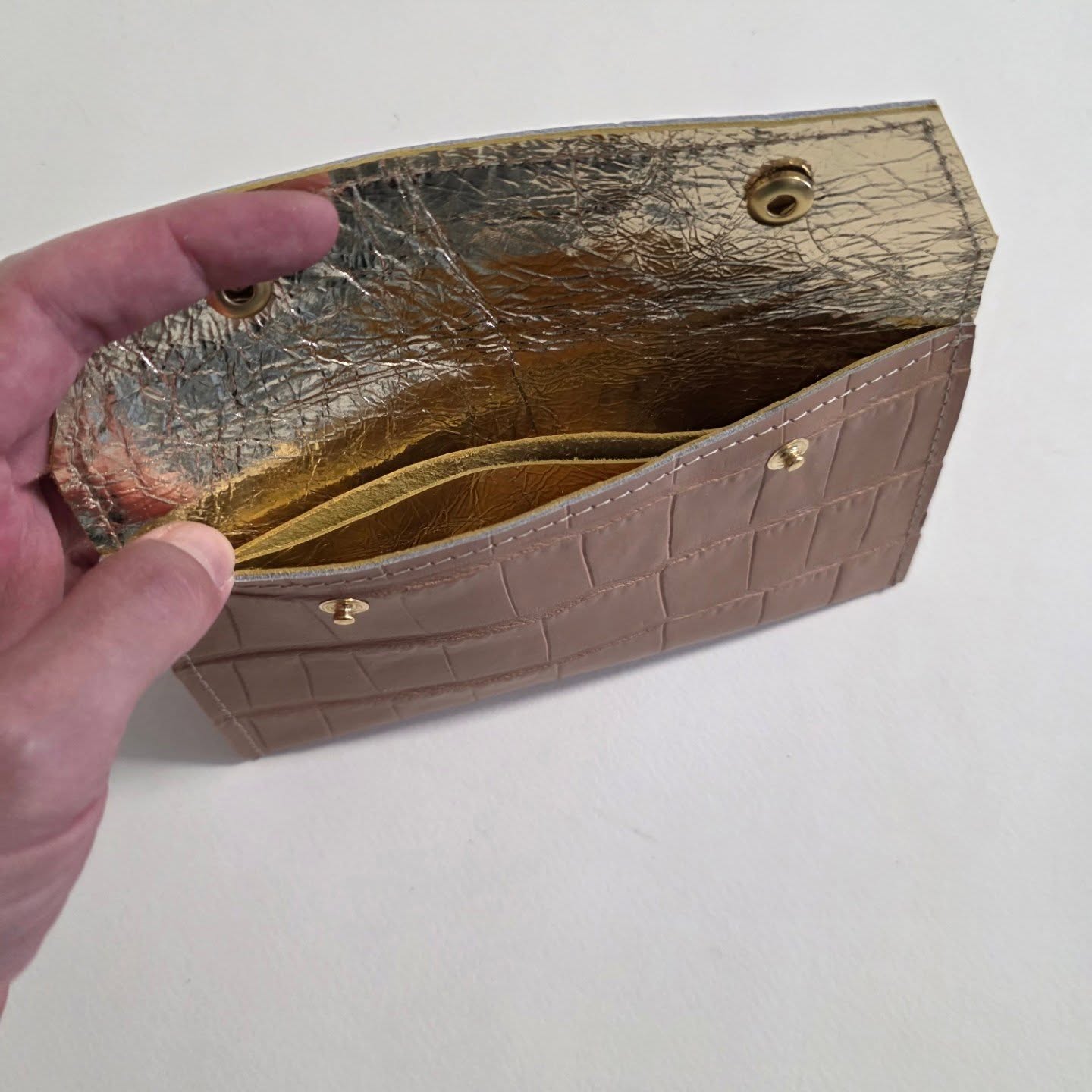 Zlatna kožna postava, tri pregrade.