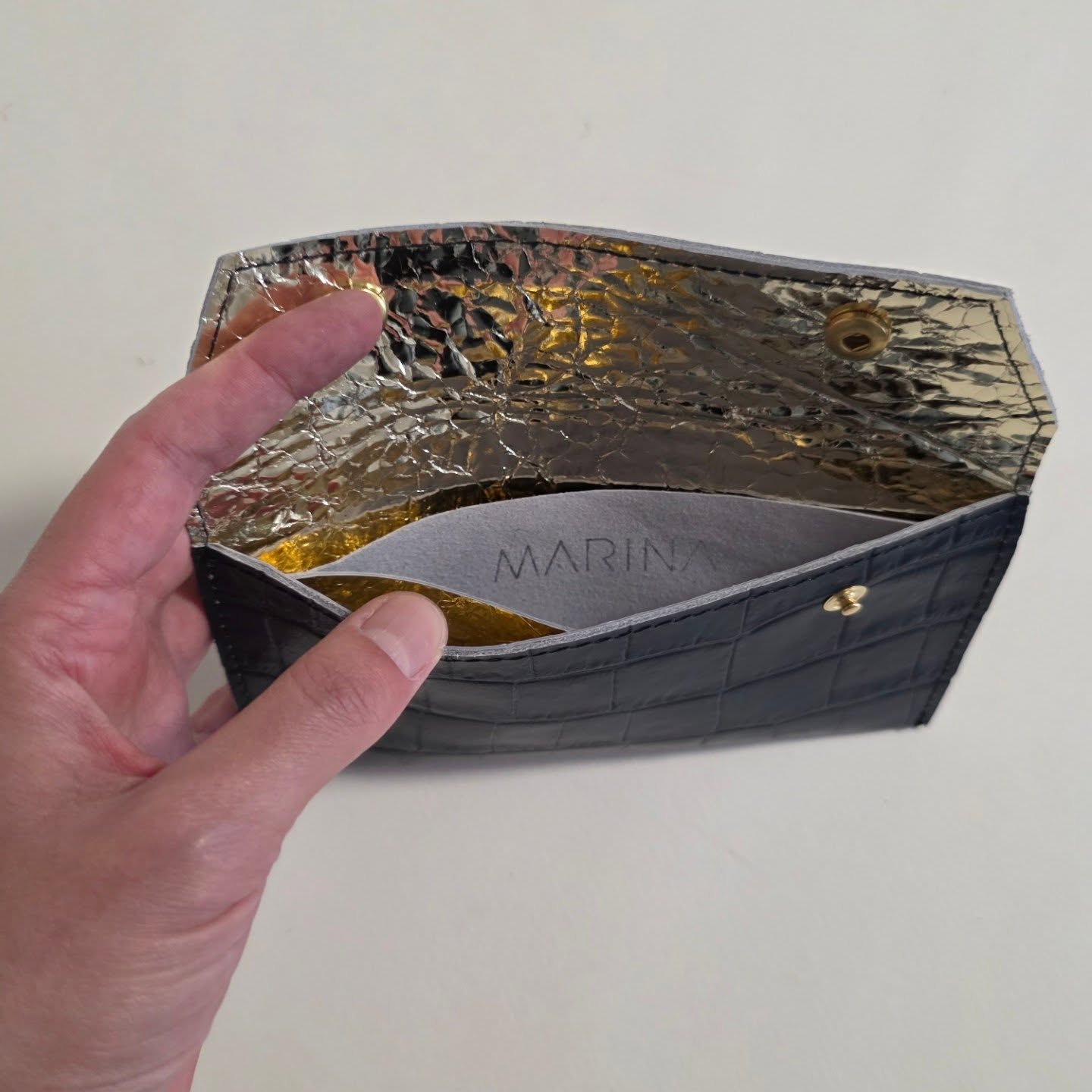 Zlatna kožna postava, tri pregrade.